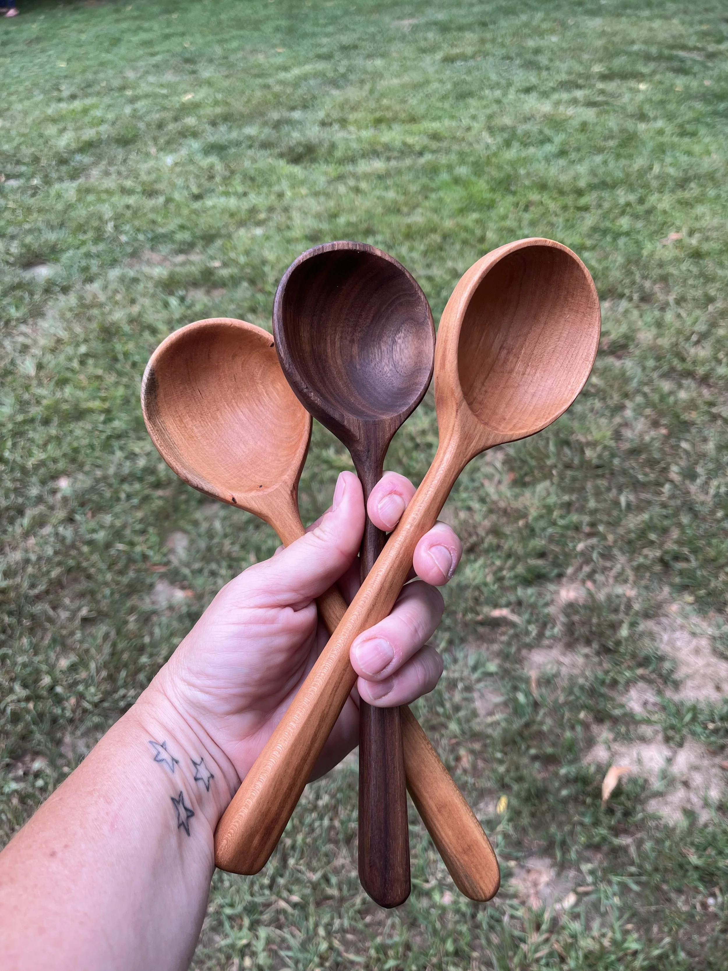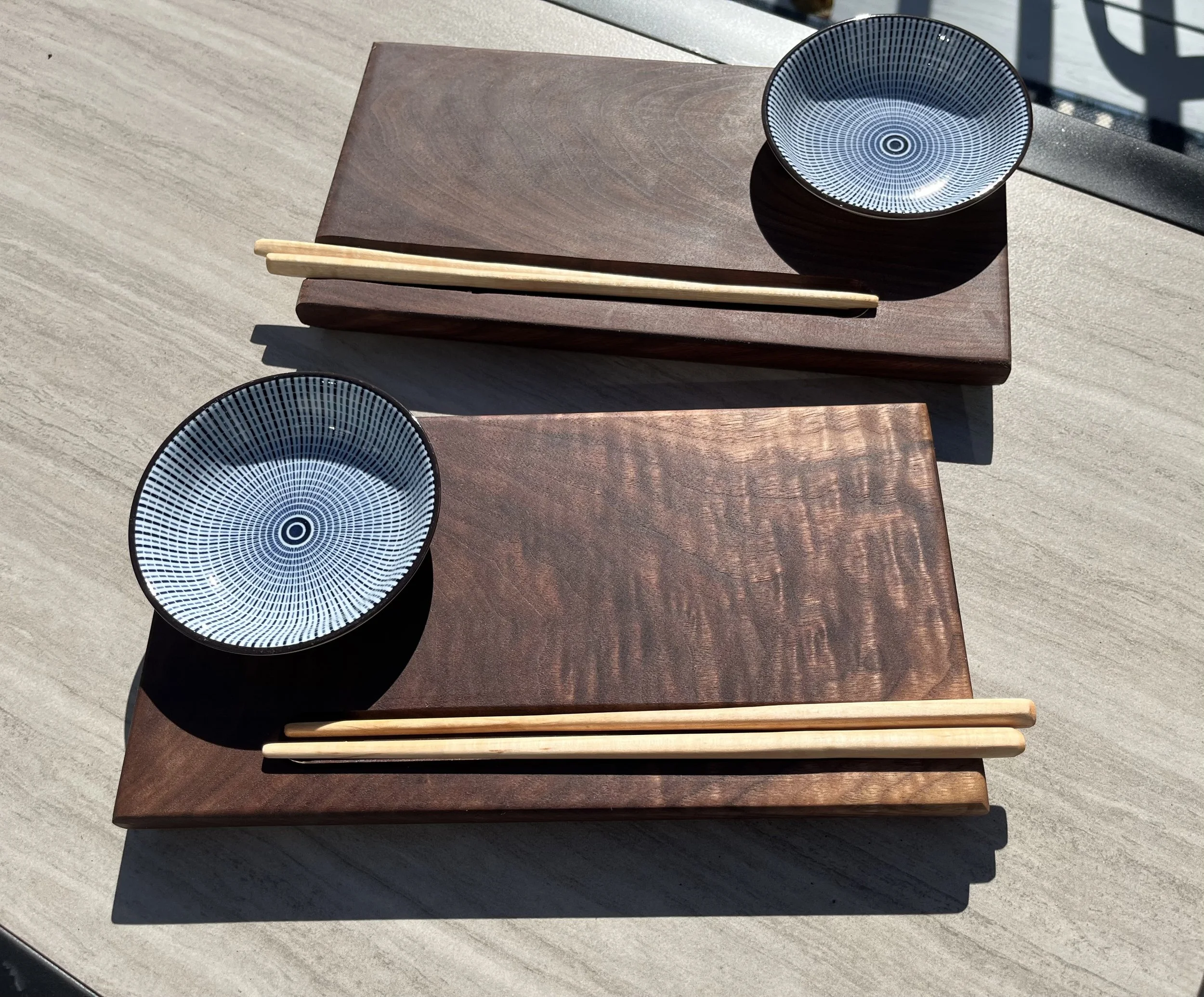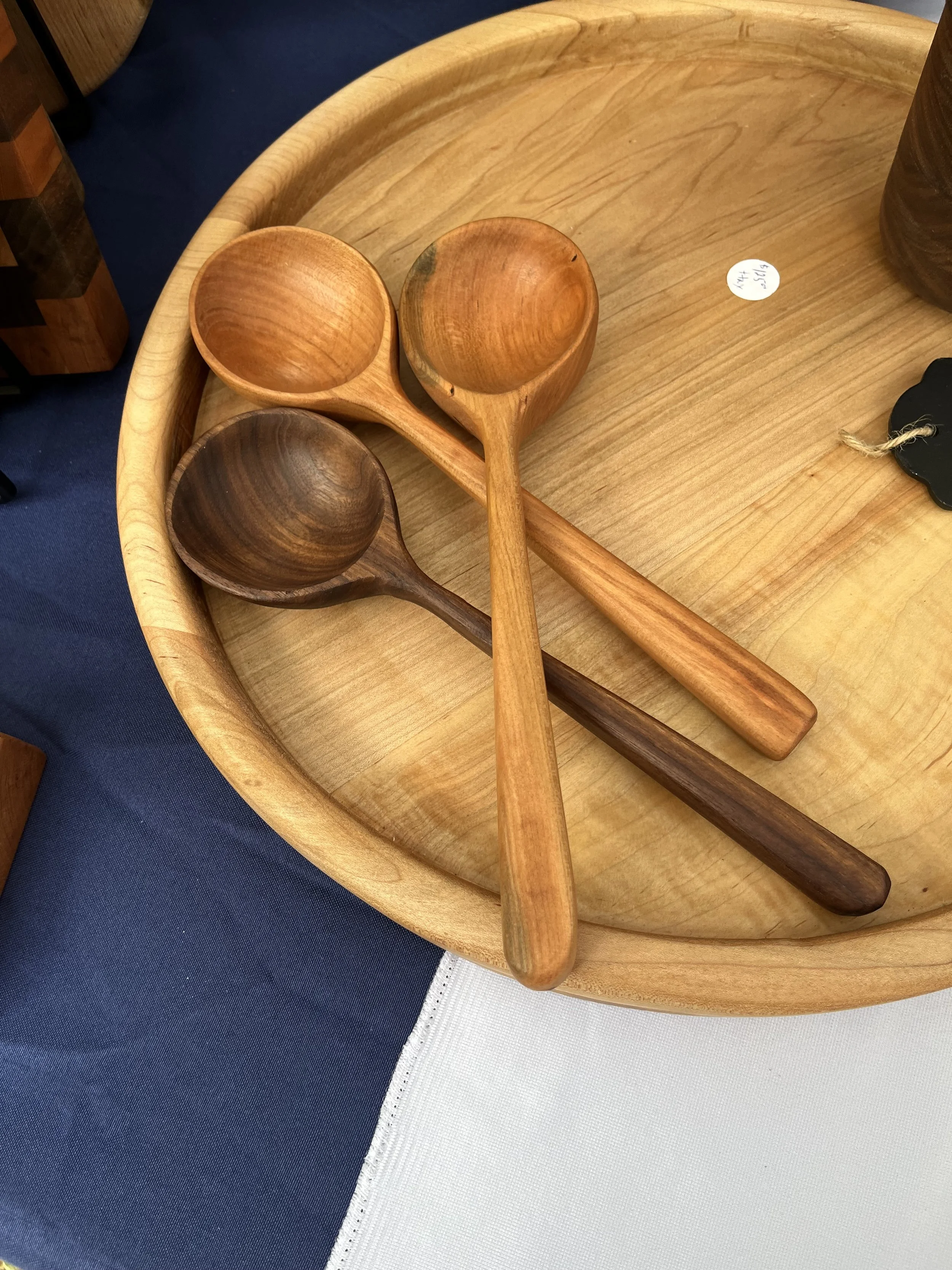 Shop Large Spoon $25.00 Sushi tray with dipping bowl and chopsticks $45.00 Multi wood butcher block with white oak, walnut and cherry $165.00 White oak with purpleheart accents serving tray with rubber feet $100.00 Small spoons/scoops $10.00 Large Walnut and maple charcuterie/cutting board $140.00 Coffee scoops $15.00 Large Fish Charcuterie boards $85.00 Solid Maple Extra long charcuterie board $275.00 Spalted Maple shallow tray/bowl $35.00 Chevron Charcuterie board $75.00 End grain Cherry and Walnut Butcher Block $130.00 Custom round Ottoman tray from $125.00 Medium charcuterie board. $70.00 Small charcuterie board $50.00 Yin Yang candle holder with candles $50.00 Small end grain butcher block $125.00 Solid Olivewood. $120.00 Large Black Walnut Lazy Susan $165.00 Solid Cherry side table with vintage legs $225.00 Solid Spalted Beech $55.00 Cheese knives $7.50 Flight boards with Glasses $50.00 Olive wood circle charcuterie board $80.00 Sold Out 8 candle holder $75.00 Toaster tongs $12.00 Wooden Spatula $15.00 Custom Long Charcuterie/Cheese Board from $80.00 Whale charcuterie board $75.00